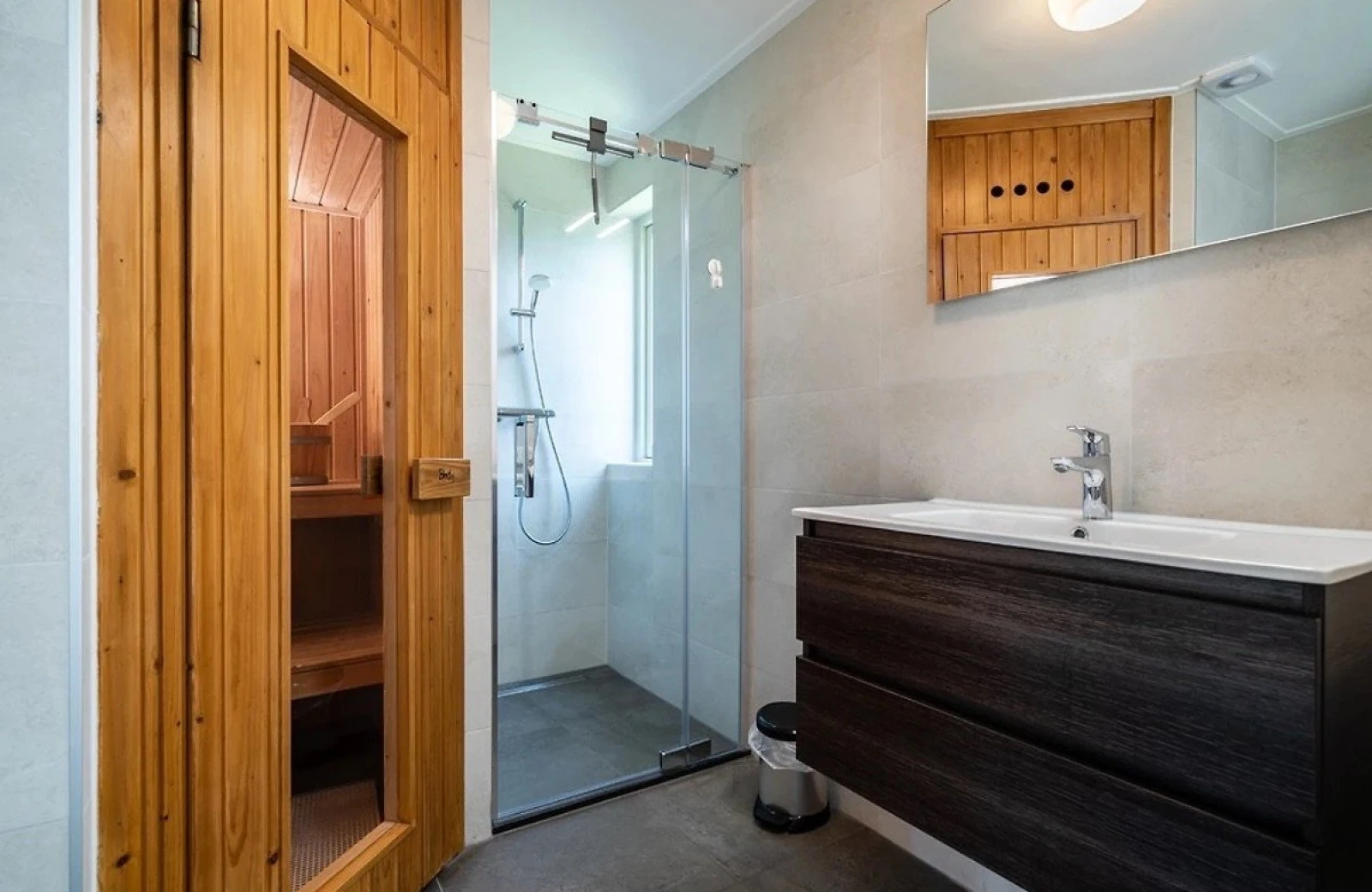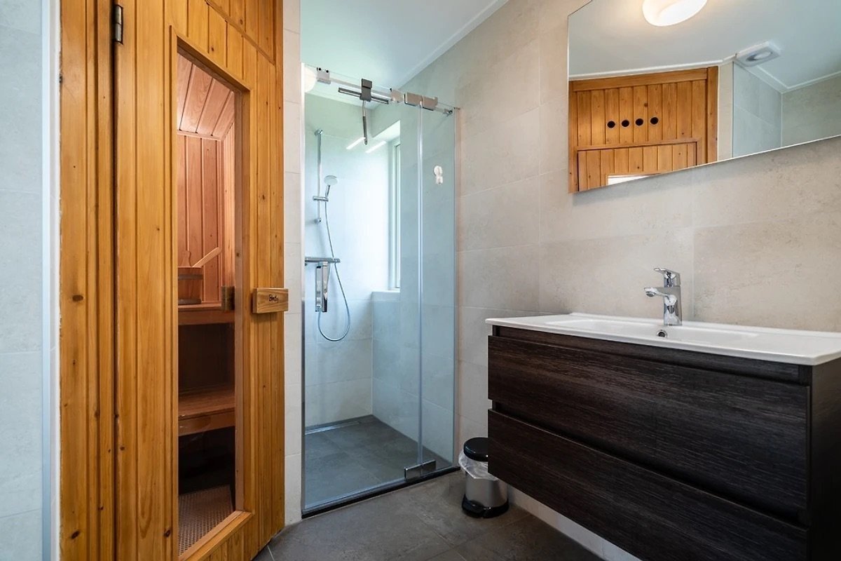Im Inneren finden Sie eine moderne „Bruynzeel”-Küche mit neuen Pfannen und Geschirr, zwei komplett neue Badezimmer mit Toilette und Sauna sowie einen gemütlichen Kamin im geräumigen Wohnzimmer. Außerdem stehen Ihnen eine Waschmaschine und ein Trockner zur Verfügung, damit Ihr Aufenthalt noch komfortabler wird.